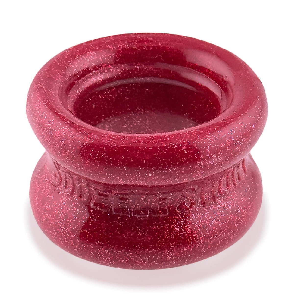 Ballstretcher court rouge en FLEXtpr™, conçu pour offrir un étirement confortable et progressif du scrotum. Sa forme sablier assure une pression équilibrée, adaptée aux scrotums hauts ou toniques.