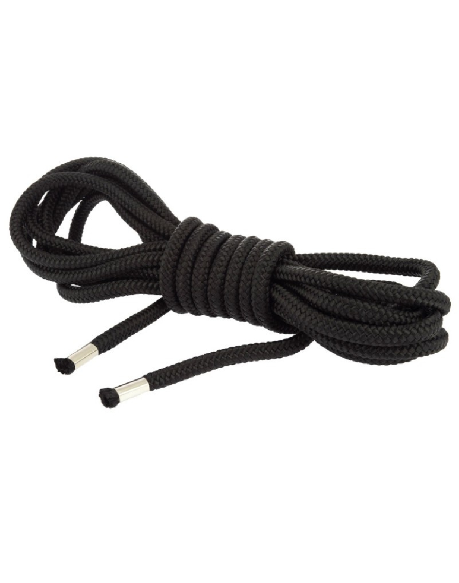Corde de bondage en nylon noir, longueur 3 mètres. Souple au toucher, résistante et facile à nouer.