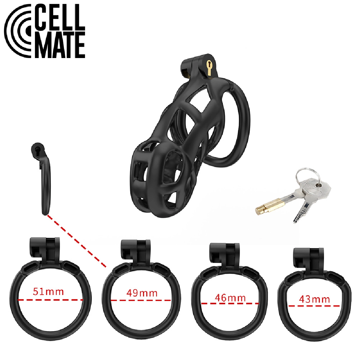 Cage de chasteté masculine en résine, conçue pour un port sécurisé, compatible douche et déplacements.