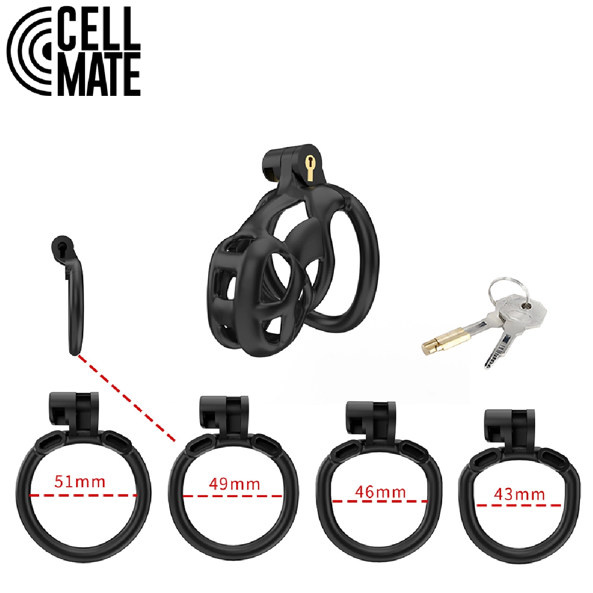 Cage de chasteté masculine en résine, conçue pour un port sécurisé, compatible douche et déplacements.