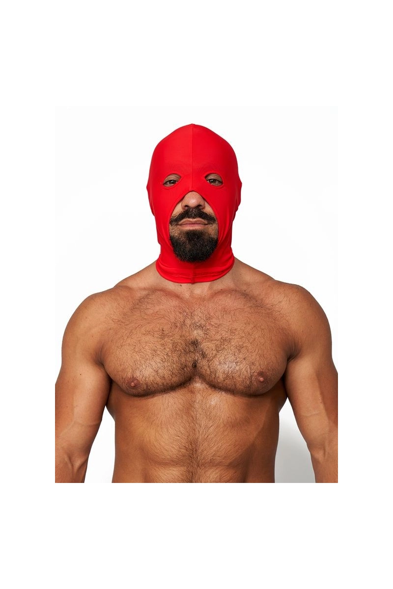 CAGOULE ROUGE EN SPANDEX OUVERTURE GRANDE BOUCHE ET YEUX MrB