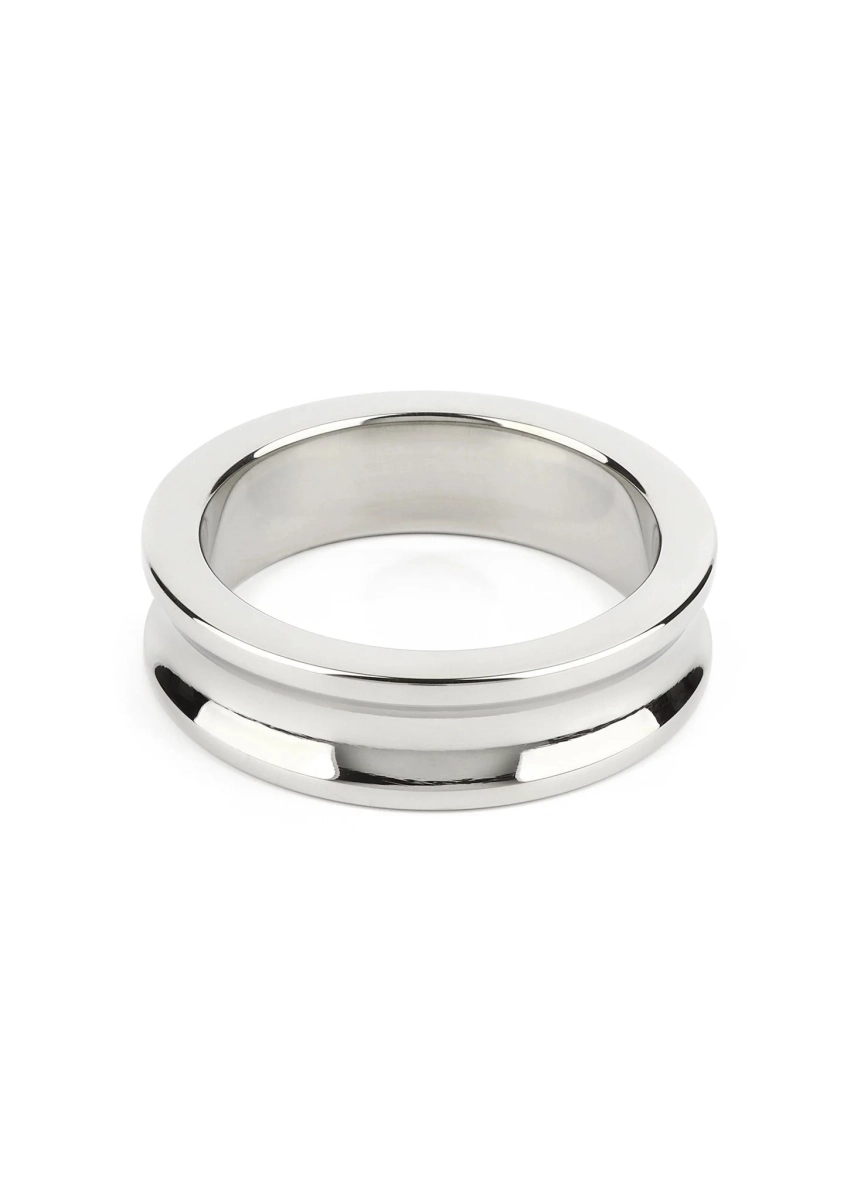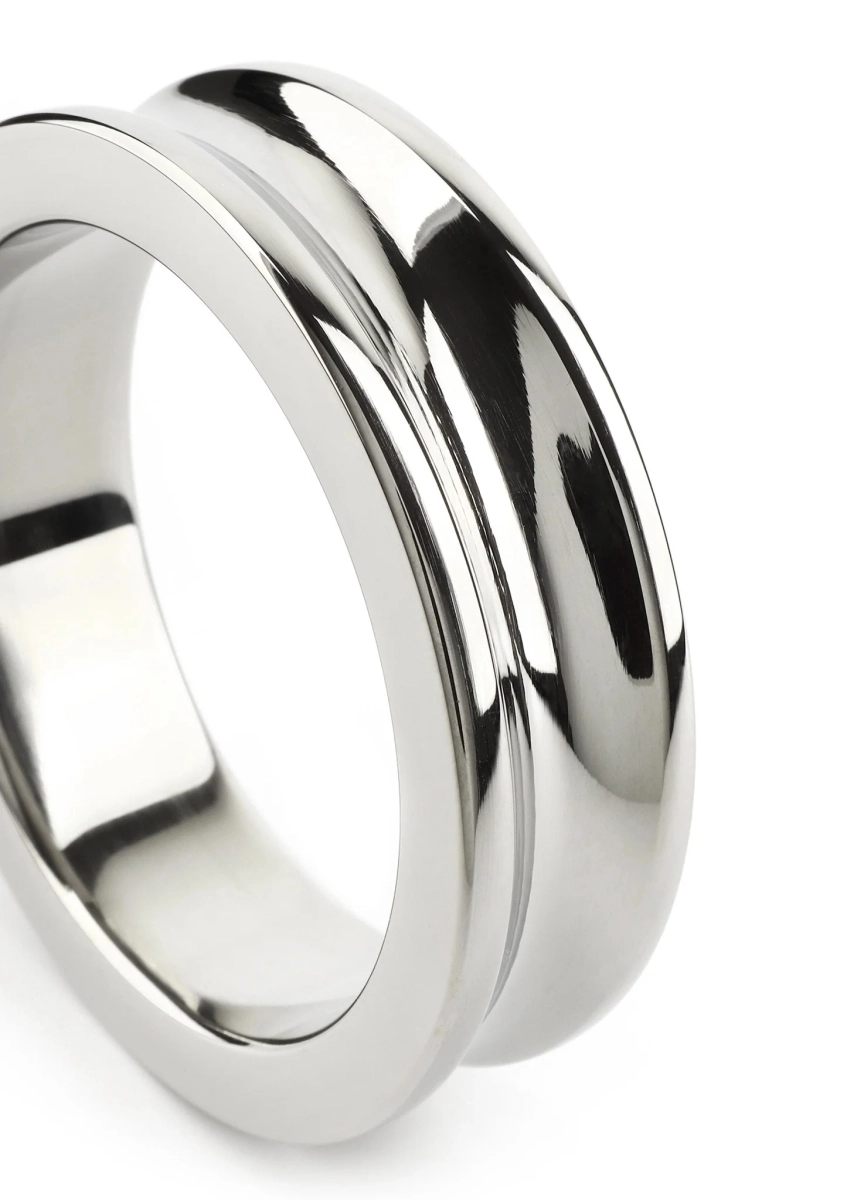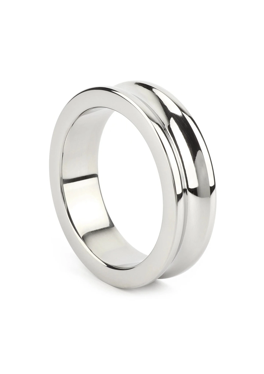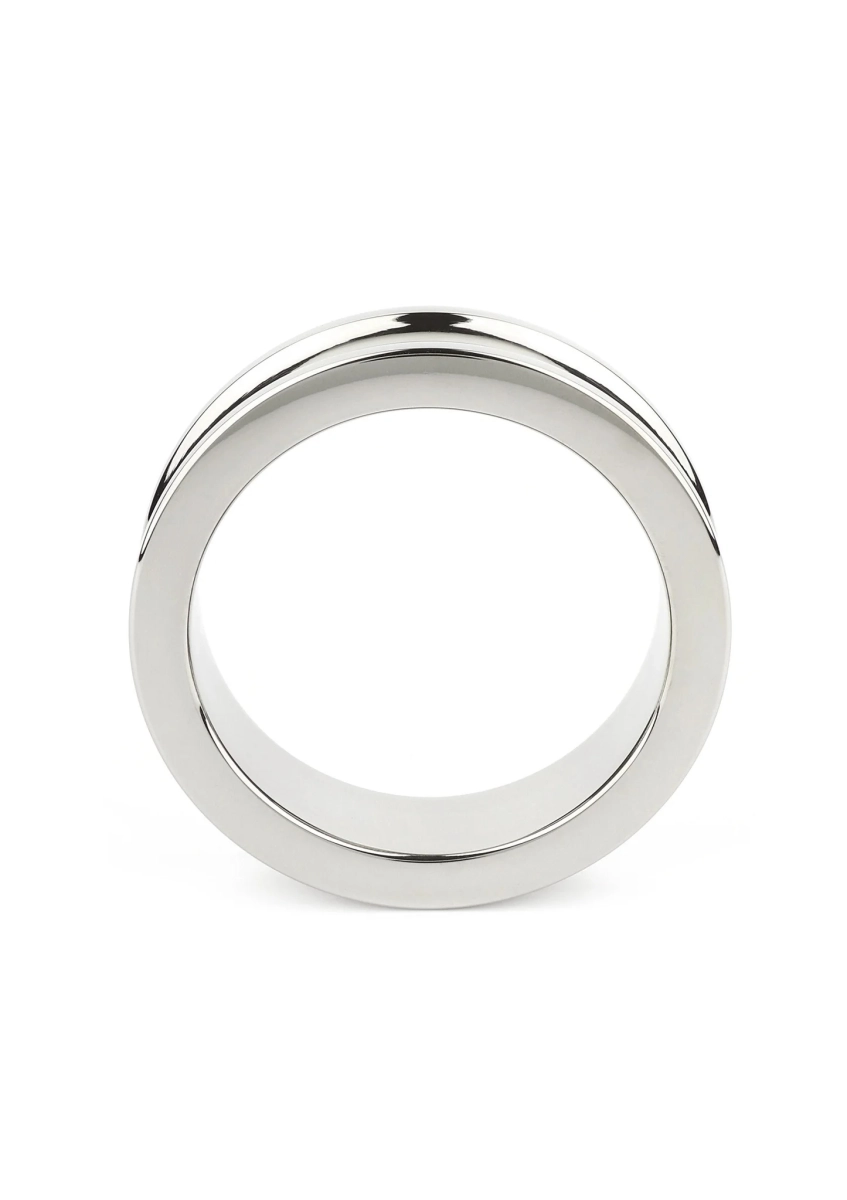 Cockring en acier inoxydable avec surface polie et bord légèrement relevé pour un maintien ferme.