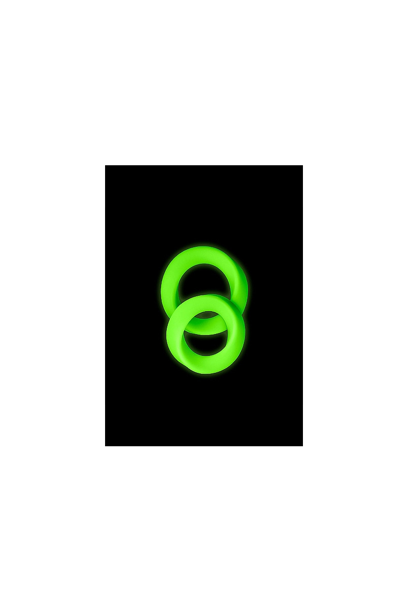 Set de deux cockrings phosphorescents en silicone souple, confortables et extensibles. Brillent dans le noir après exposition à la lumière.
