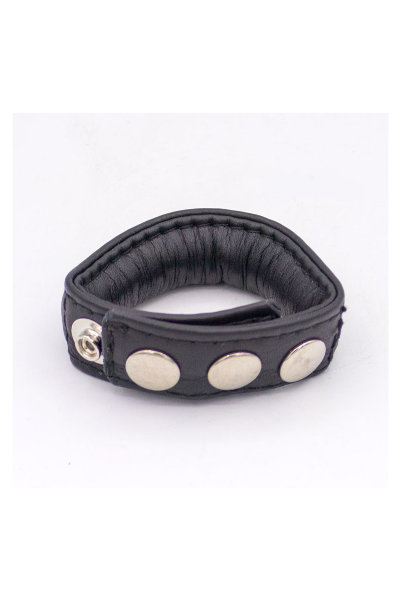 Ce cockstrap en cuir allie élégance, efficacité et stimulation accrue. Fabriqué en cuir noir souple, il s'ajuste facilement grâce à sa double pression métallique pour un maintien optimal à la base du sexe. À l'intérieur, des billes de plomb dissimulées assurent un effet de lest, pour un poids total compris entre 55 et 60 grammes.