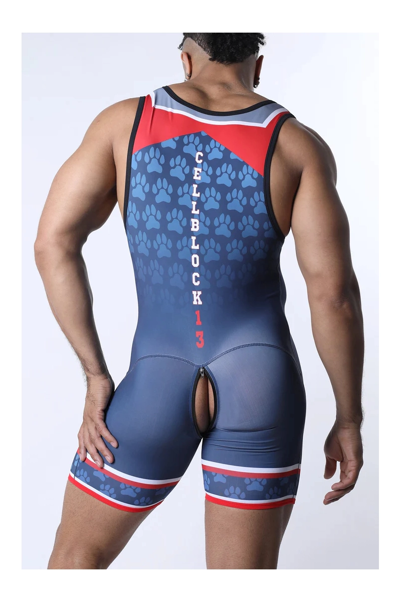 Affirmez votre côté pup avec cette combinaison moulante signée CellBlock13. Le Muzzle Up Zipper Singlet combine design athlétique et détails fétichistes, avec des graphismes de patte et museau sur la poitrine, une coupe sport et un zip intégral dans le dos pour un accès total. Fabriqué dans un tissu doux, extensible et respirant, il épouse parfaitement le corps tout en permettant une totale liberté de mouvement. L'arrière entièrement ouvert le rend idéal pour les soirées pup ou les moments plus intimes.