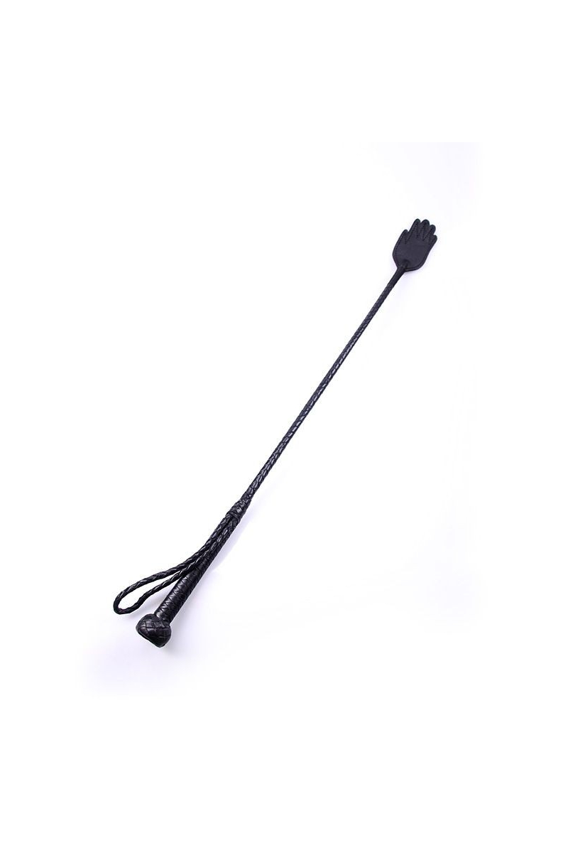 Profitez de votre partenaire lorsque vous le dominez avec ce fouet en cuir noir, qui se sent bien dans la main et vous procure une bonne prise en main. À la fin de ce fouet en cuir tressé, une main (également en cuir) est attachée qui porte des coups frappants.