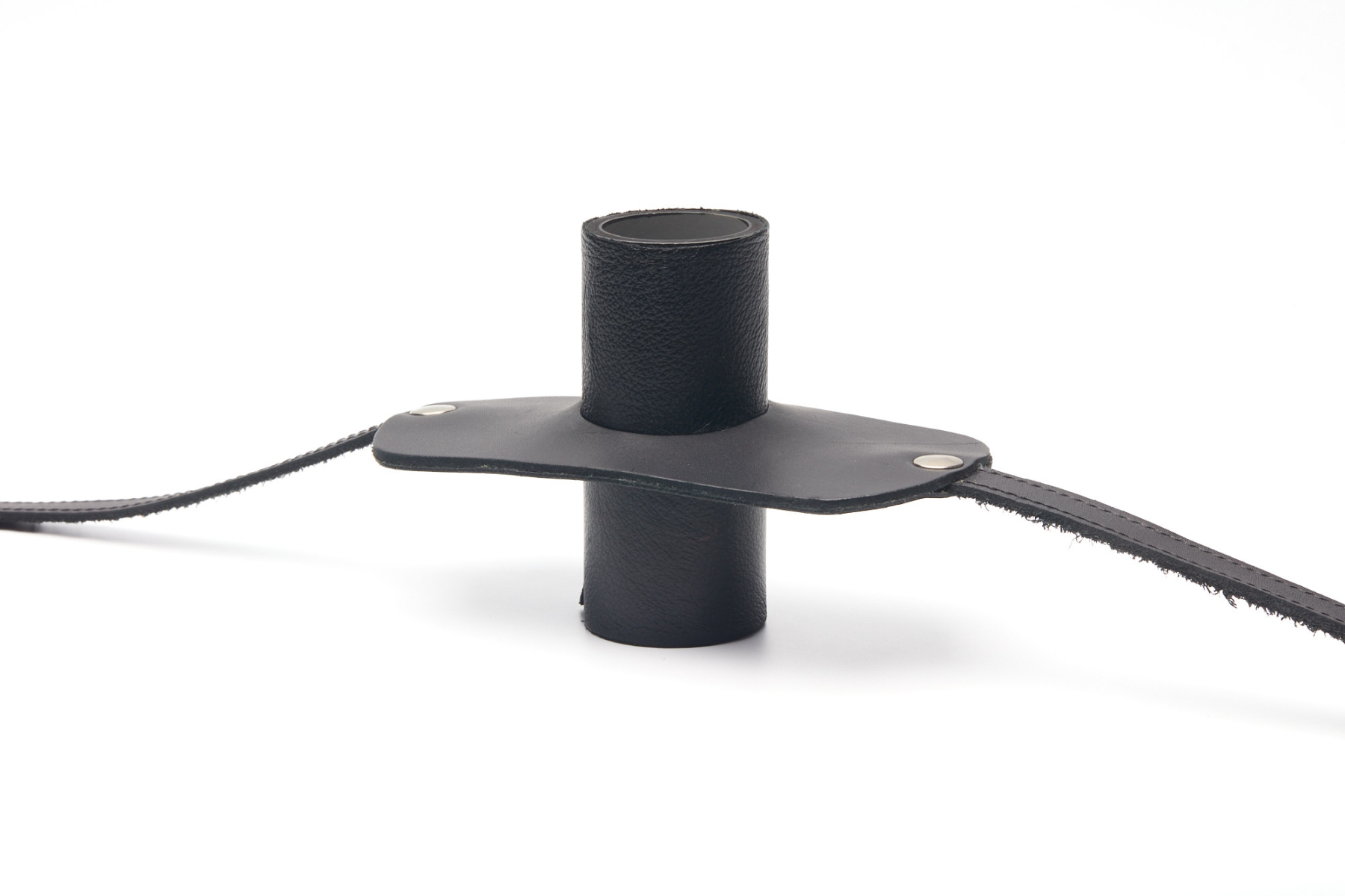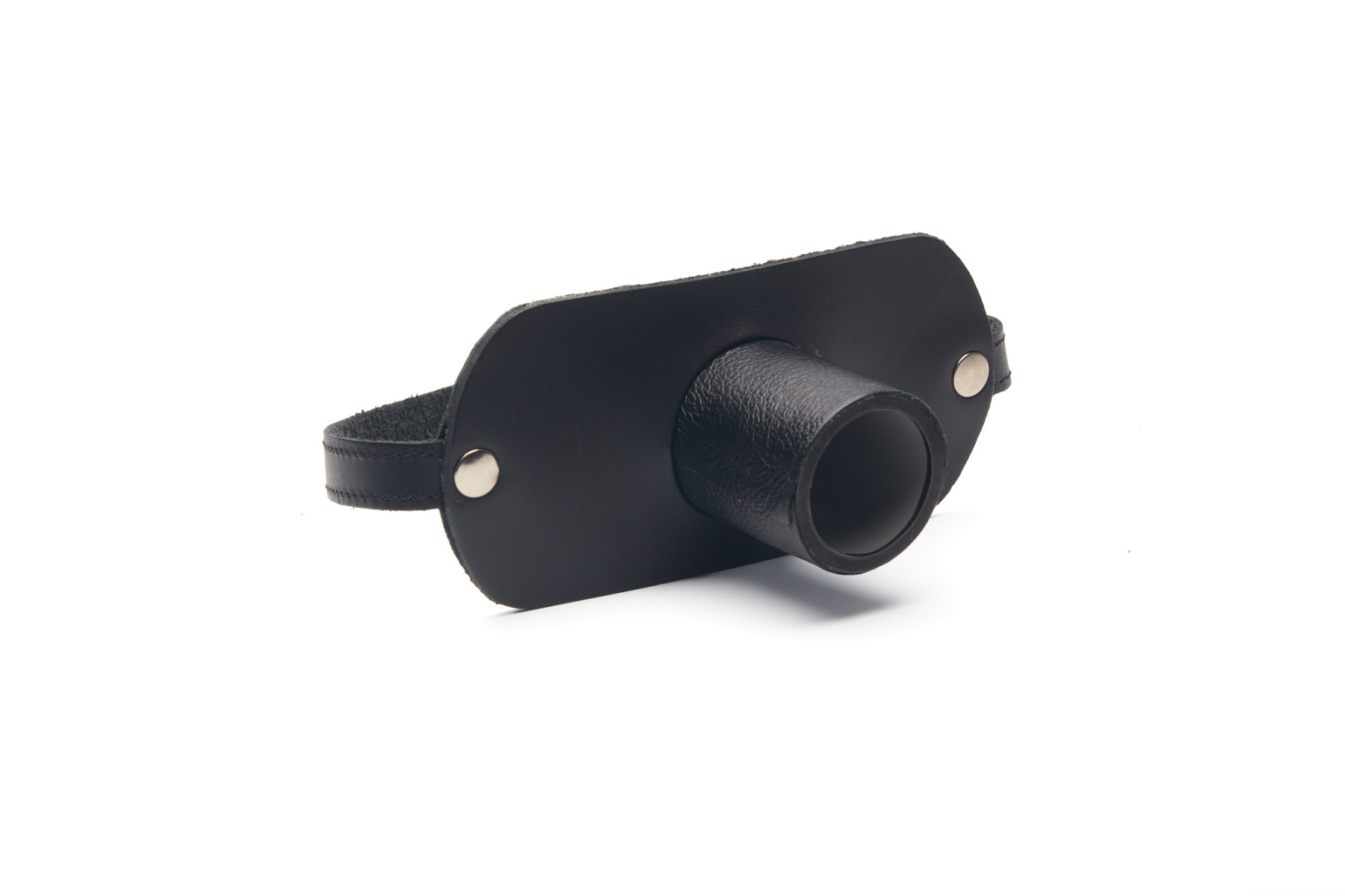 Bâillon en cuir avec tuyau intérieur extérieur. Réglable sur 7 positions.