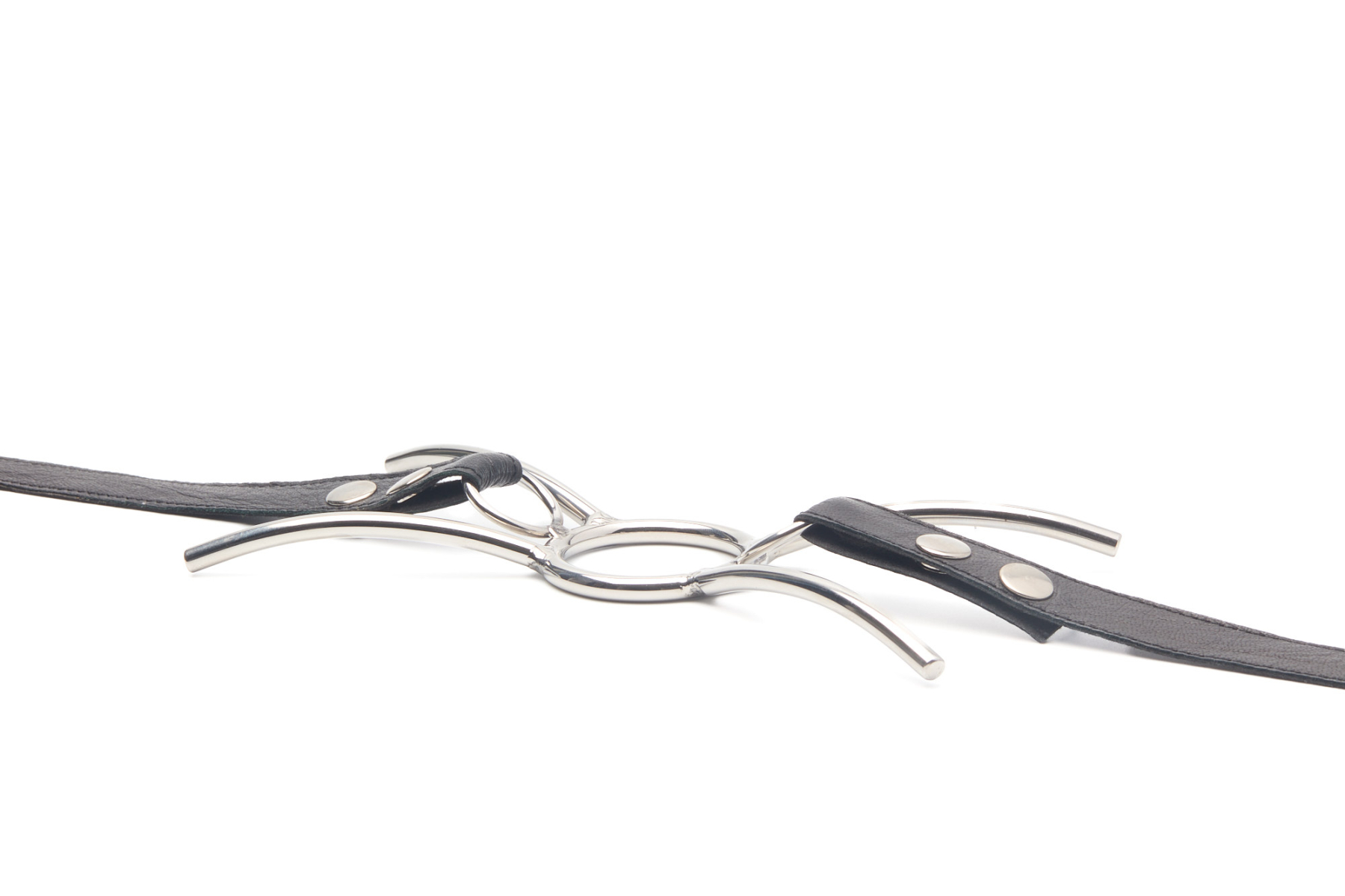 Bâillon «chat» ou «Cat gag» en cuir avec crochets en acier.