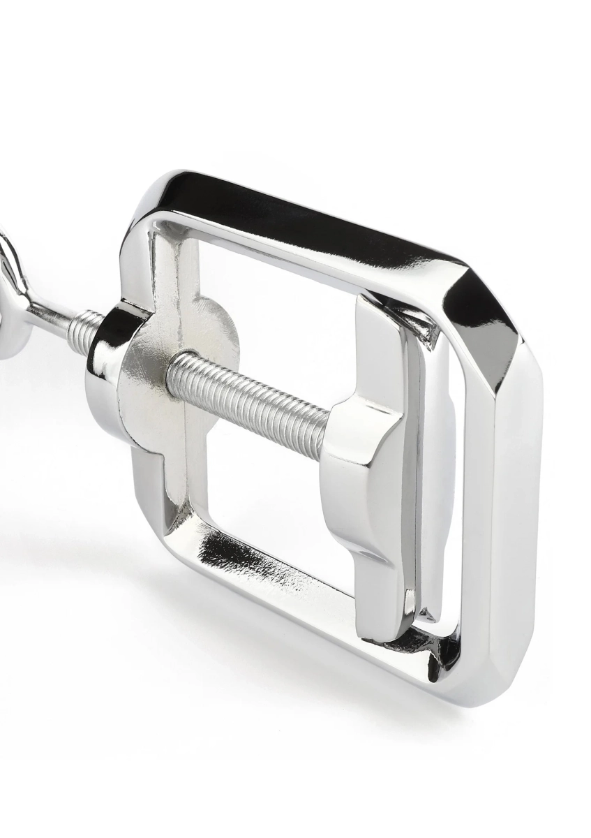 Un accessoire conçu pour les jeux de compression et de contrôle de la pression. Son mécanisme de serrage réglable permet d’ajuster progressivement l’intensité afin d’explorer différentes sensations en gardant une maîtrise précise de la pression. Sa structure solide assure stabilité et sécurité pendant l’utilisation.