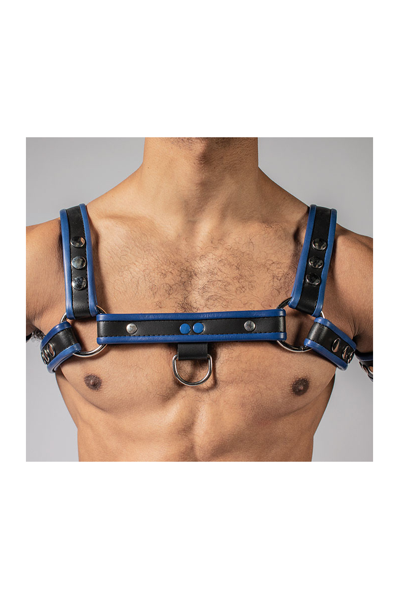 Découvrez le harnais IEM Holster Cuir Noir avec Liseré Bleu - une pièce de fabrication 100% française disponible exclusivement chez IEM Paris. Plongez dans un monde de séduction et d'audace avec ce harnais en cuir haut de gamme spécialement conçu pour les hommes qui osent se démarquer.