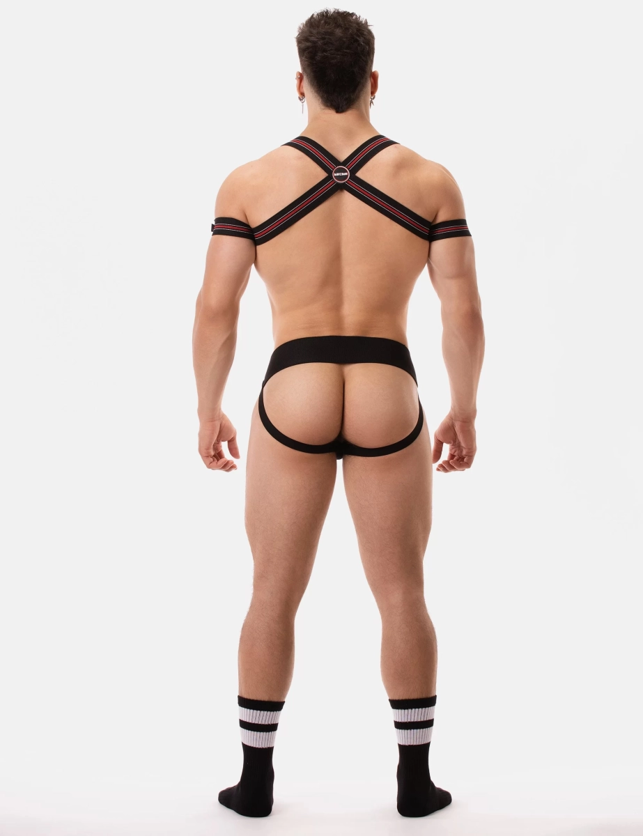 Jockstrap sportif classique avec poche côtelée noire, maintien ferme et ceinture élastique robuste. Confort durable et finitions précises.