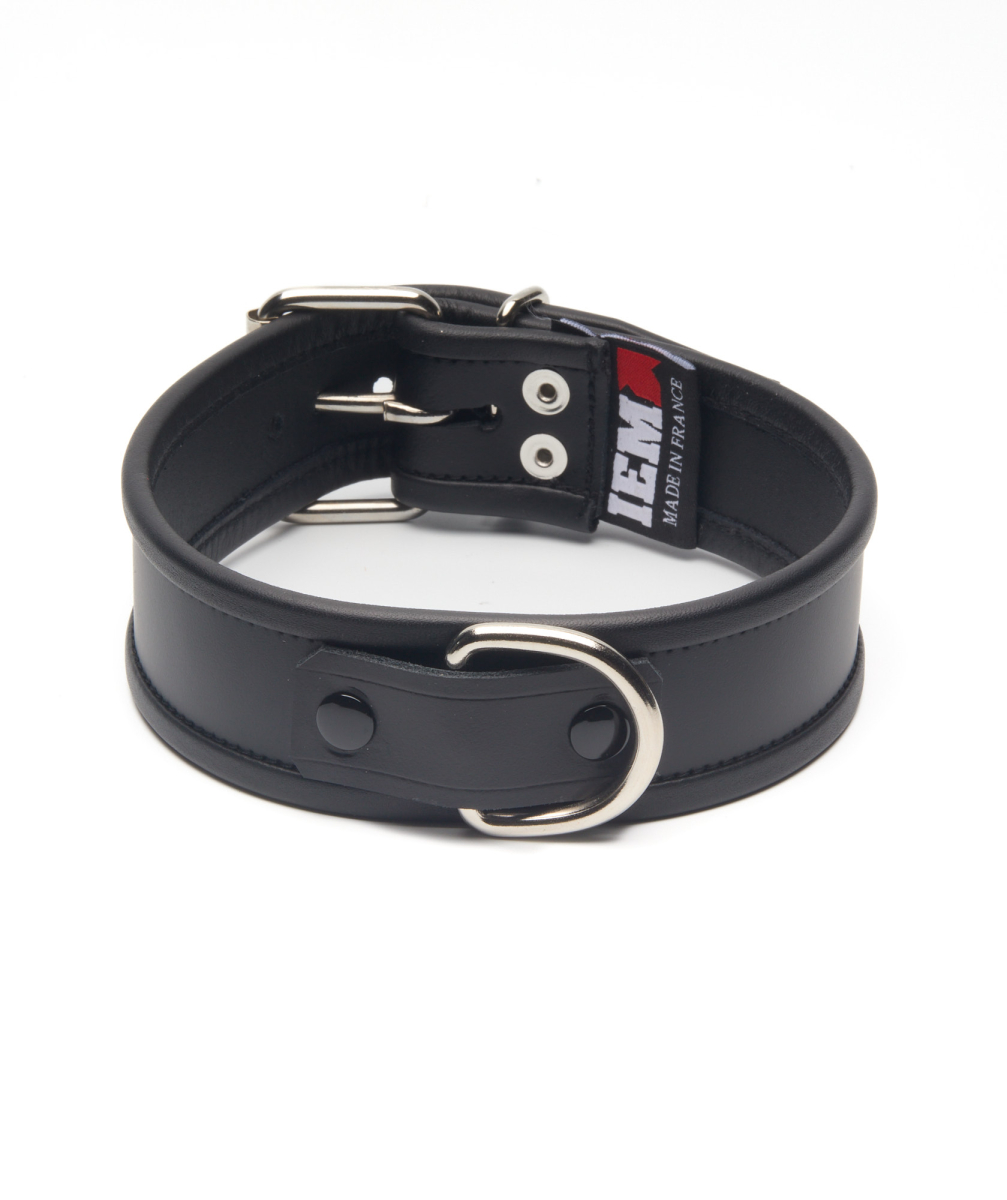 COLLIER EN CUIR IEM AVEC ANNEAU - NOIR