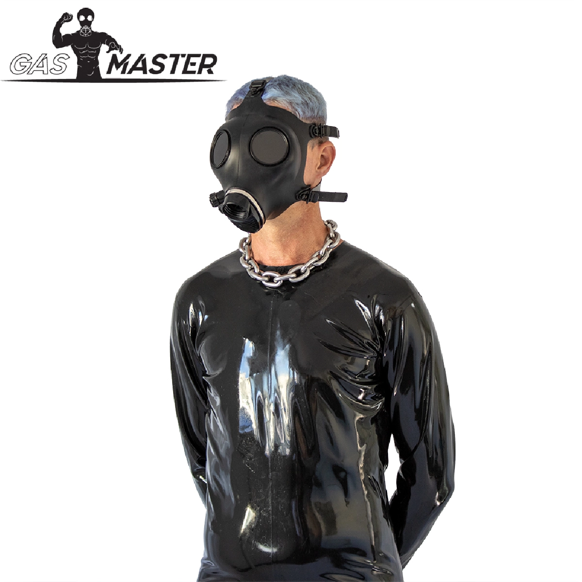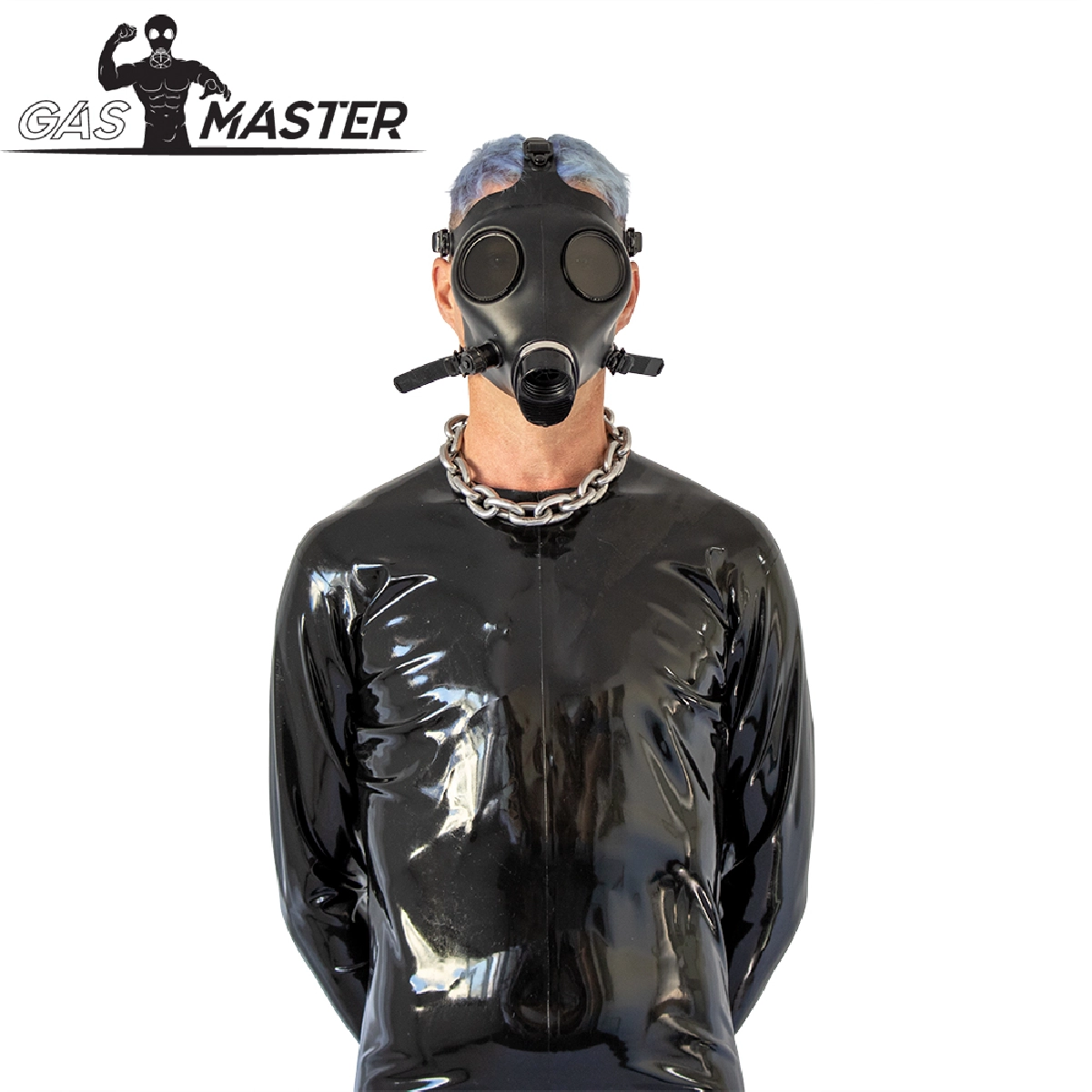 Masque à gaz en caoutchouc noir avec verres polarisés rotatifs et caches métalliques amovibles. Design inspiré des modèles “Alien”, compatible avec tuyaux et filtres à pas de vis standard. Sangles araignées réglables pour un ajustement précis.