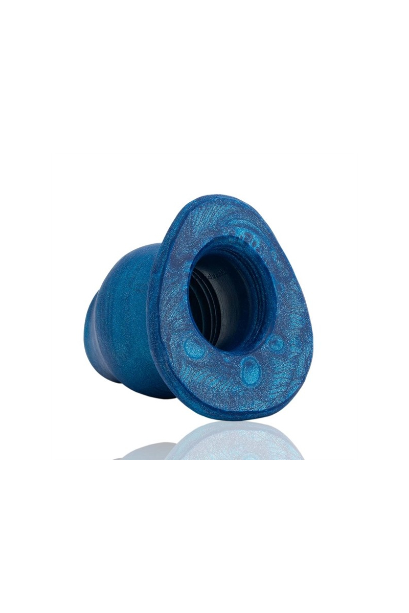 Plug creux de grand format en silicone bleu, conçu pour les utilisateurs expérimentés recherchant une stimulation interne profonde. Base évasée et texture interne pour une expérience sûre et prolongée.