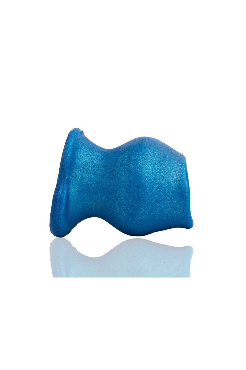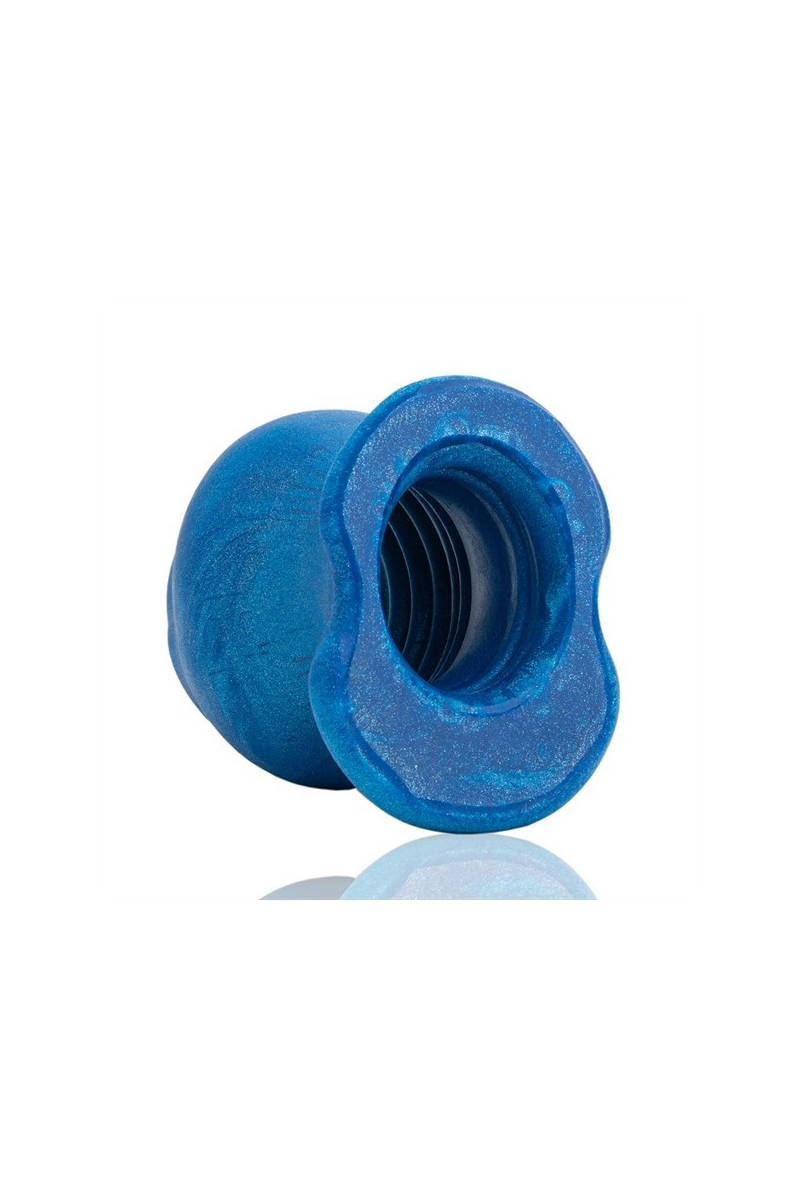 Plug creux XXL en silicone bleu, pensé pour les utilisateurs expérimentés. Sa structure épaisse et son canal texturé permettent une exploration intense et maîtrisée.
