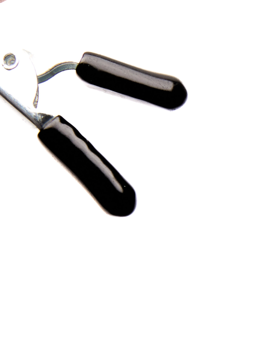 Ces pinces croco avec poids cylindriques noirs sont conçues pour les amateurs de BDSM souhaitant combiner une pression ajustée avec un ajout de poids. Chaque pince est équipée de poids de 100g, offrant ainsi un contrôle parfait de la pression appliquée. Le mécanisme croco, avec sa prise solide et ses mâchoires ajustables, permet de maintenir les pinces en place tout en offrant une stimulation marquée. Les extrémités en caoutchouc noir garantissent confort et sécurité, rendant ces pinces idéales pour des jeux de domination intenses.