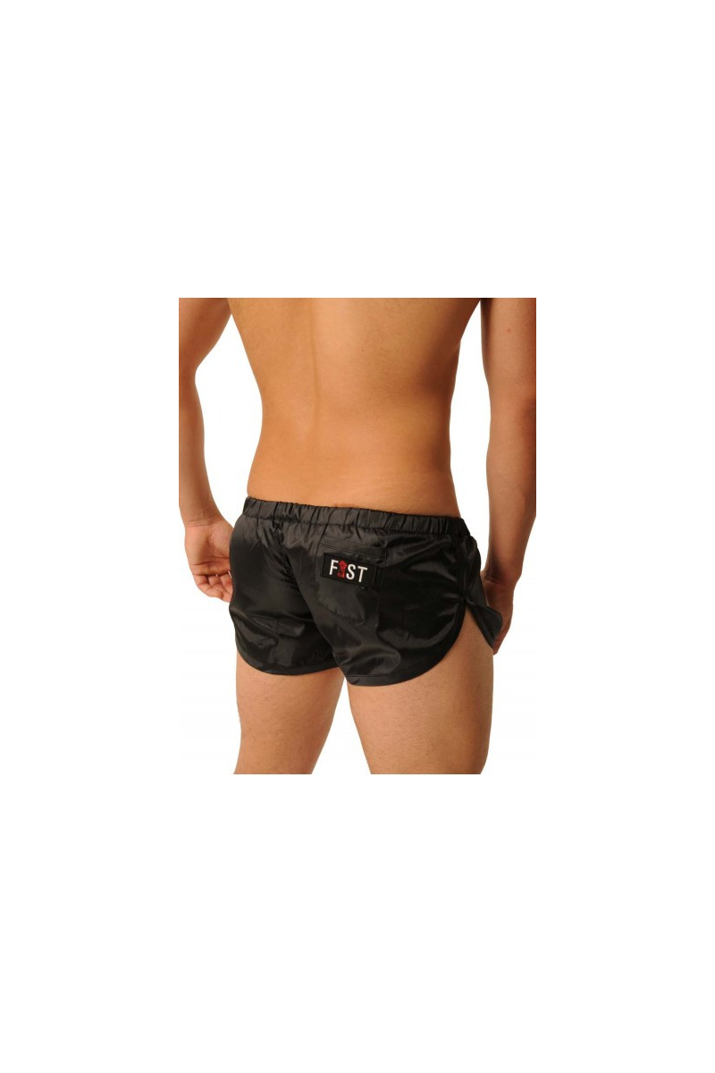 Short léger coupe vintage en polyester résistant, avec ceinture élastique, cordon de serrage et poche arrière siglée Fist. Idéal pour le sport ou le jeu.