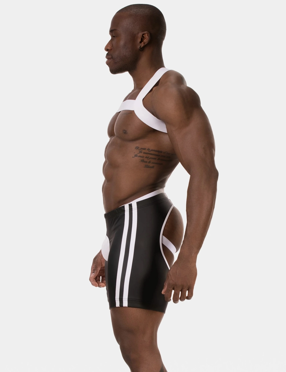 Un short chaps au design ouvert à l’arrière qui combine esthétique audacieuse et coupe ajustée. Sa matière extensible effet cuir épouse les formes tout en offrant une bonne liberté de mouvement. Une pièce pensée pour un style affirmé et une silhouette mise en valeur.