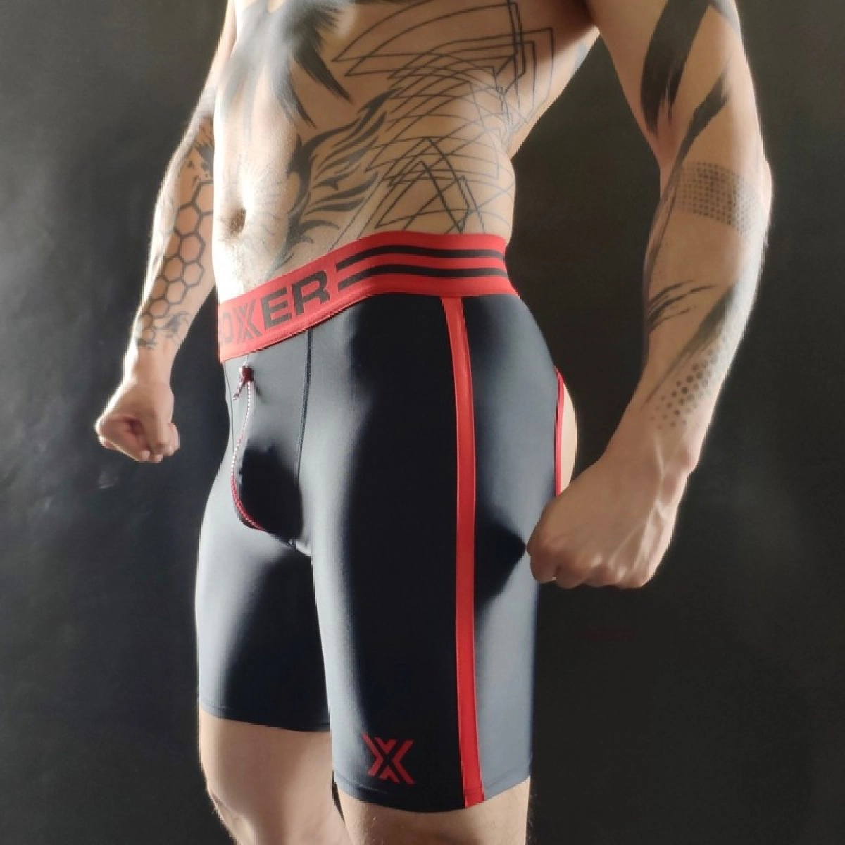 Un short inspiré des modèles cyclistes, revisité pour une exposition assumée. Sa coupe gainante structure les lignes du corps, tandis que l’ouverture arrière laisse une liberté totale. Une pièce pensée pour les environnements où le regard et le mouvement comptent.
