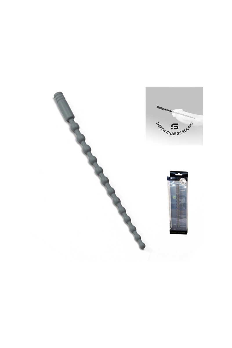 Sonde urétrale en silicone médical avec 13 renflements progressifs. Surface ultra-lisse et poignée texturée. Longueur : 17,8 cm.