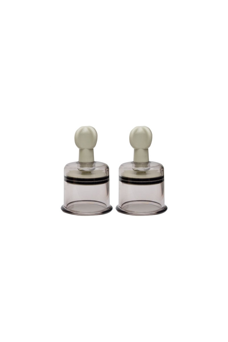 Ventouses blanches de 50 mm avec système de vissage, offrant une aspiration puissante et progressive pour intensifier la stimulation des tétons et zones sensibles.